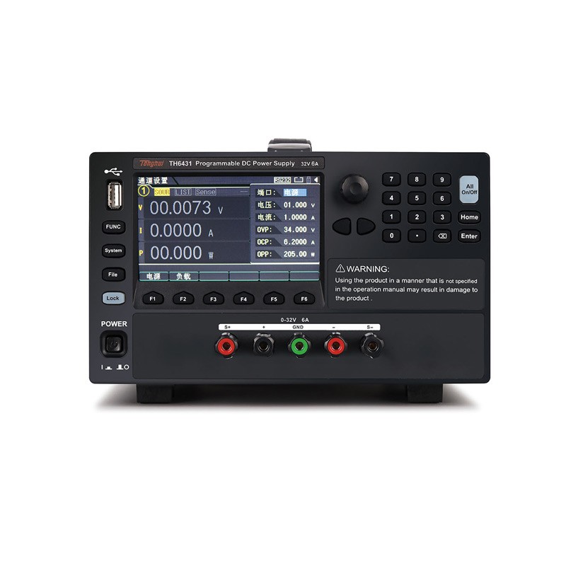 TH6430系列多通道可编程线性源载一体电源具有极快的电压上升速度,并具有超高的精度和分辨率,支持面板编程;直流电子负载具有高精度及多种测试功能,性能优越。