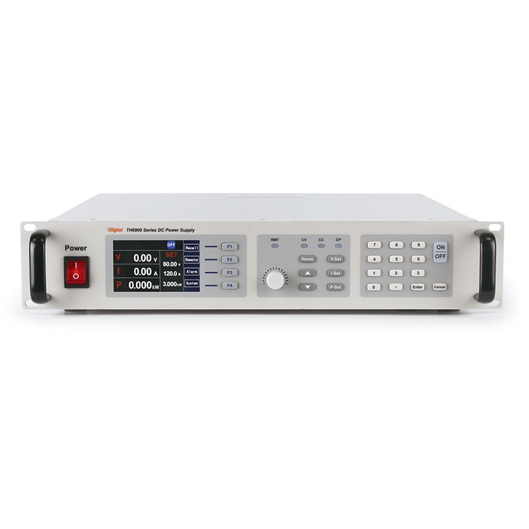 TH6900系列是宽范围输出的可编程开关直流电源,有750W、1500W、3000W三种功率21个型号可选。仪器支持同型号主从并联最多达10台,从而满足更高的输出电流和输出功率需求。