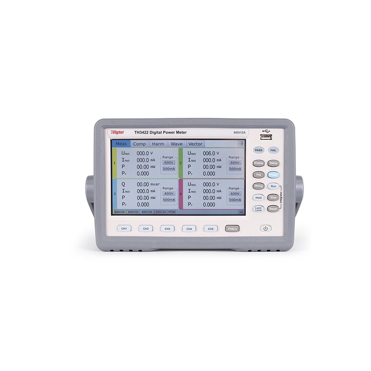 TH3411/TH3421/TH3422是采用专业的锁相环倍频同步技术,多通道同步源信号可选,搭载嵌入式操作系统,使得人机交互接口较为灵活稳定,其(0.15%读数+0.2%量程+1字)的基本精度、常规测试7次的测试速度、DC/45Hz-420Hz的频率范围可以满足市场上大部分电力系统的测量要求,标配谐波分析功能,对于工频信号最大可测试50次谐波成分。