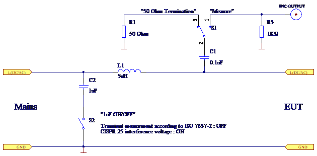 TAN8124人工网络代替车辆线束的阻抗,用做参考标准,以测定设备及电气和电子装置的性能。适合于测量汽车电子、飞机和舰船的干扰电压,频率范围0.1-110MHz。符合CISPR 25和ISO 7637-2要求。依据ISO 7637-2标准,可以测量瞬态干扰。内置可切换的50欧姆负载。