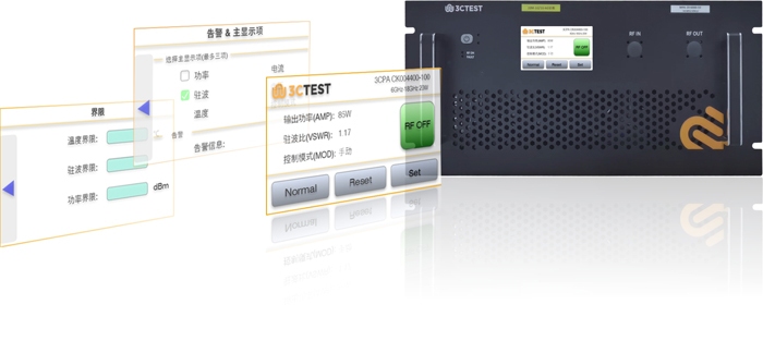 由于测试环境及测试要求的不同,可以对功率放大器内部保护参数进行修改设置;同时在显示屏上显示所需要的信息。方便测试工程师,及时了解功率放大器当前的运行情况。