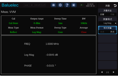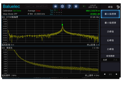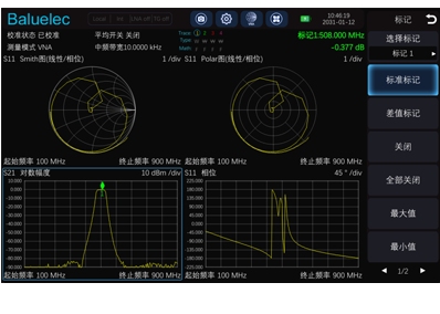 显示格式:回波损耗、插入损耗、驻波比、相位、群延迟、Smith图