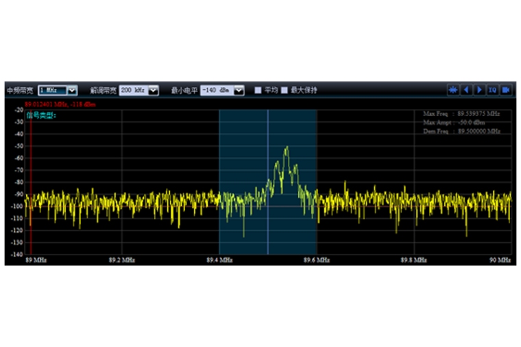![]() | 频率扫描 频率扫描模式主要用户固定频道间隔的无线电服务监测。用户可以灵活的设置扫描频率范围和频率步进值,并针对不同的信号设置不同的扫描变量。 |