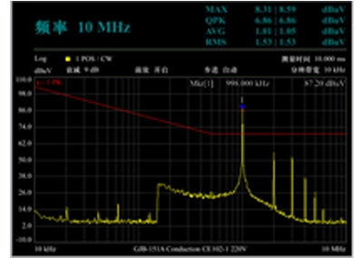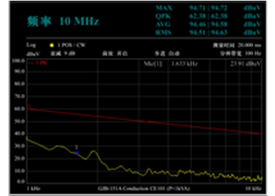 适用于所有的设备电源线,包括电源回线。测试符合GJB 151A/152A-97标准CE102测试和校准要求,在测试系统软件支持下完成测试