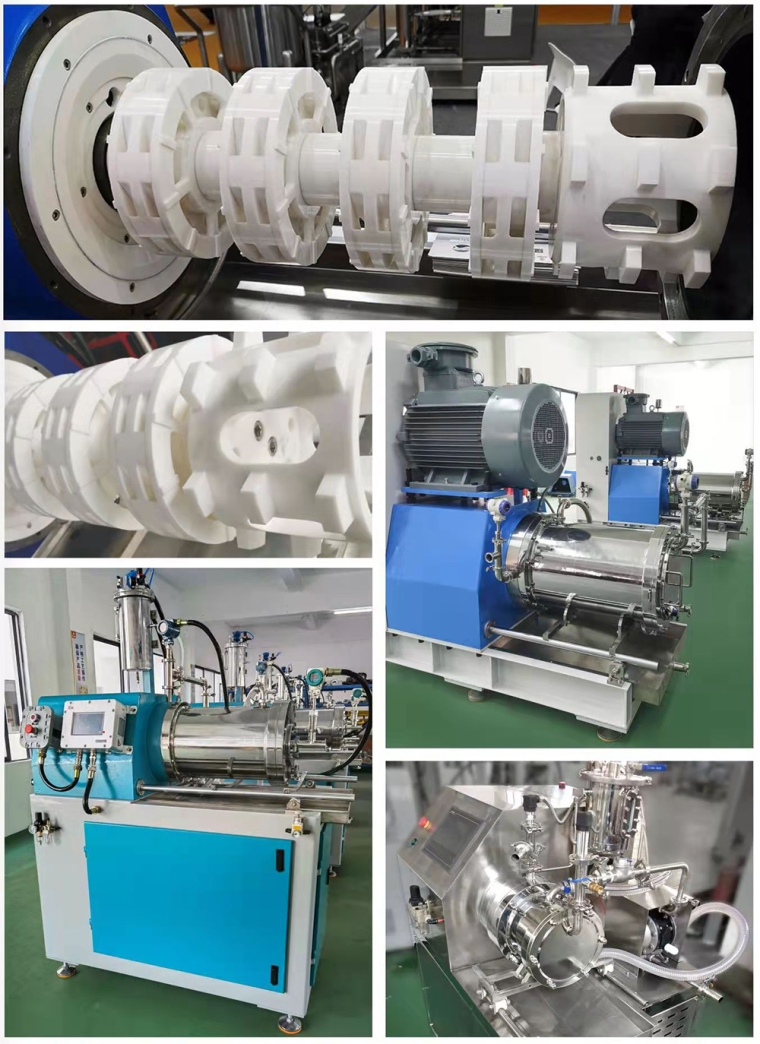 1.特殊的涡轮优化设计,使研磨腔内磨珠具备更大的动能,同时磨珠分布更均匀,细度分布更窄