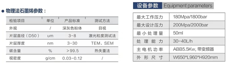 把研磨处理后的石墨浆料经过石墨烯高压设备在超高压状态下(200Mpa)进行爆破、撕裂、剪切、剥离使其结构产生变化,得到石墨烯浆料。此项工艺根据最终石墨烯的应用要求可以做重复剥离。