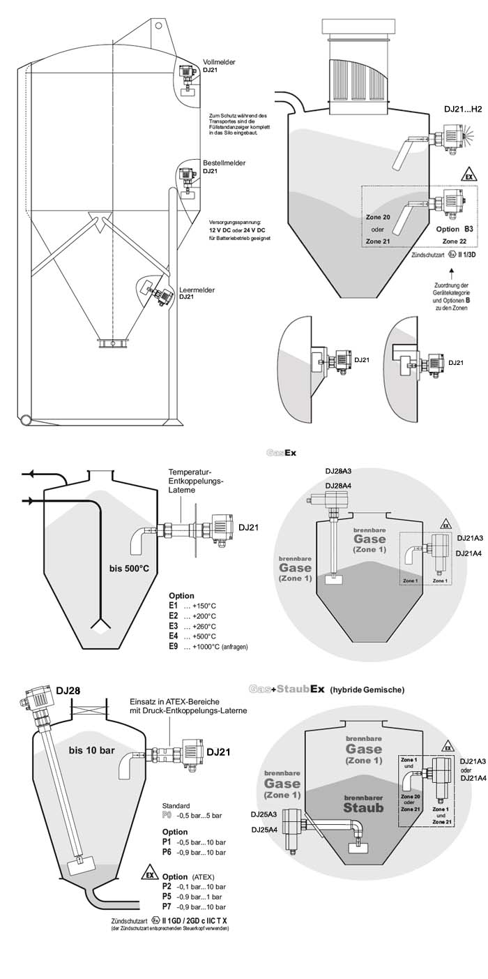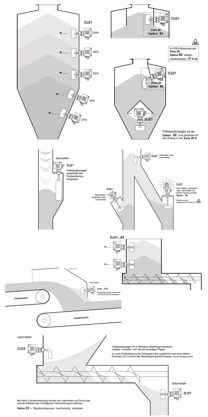 DJ21是在几乎所有的大宗物料作为筒仓和物料满仓,空仓或需求的指标。 独立的单元配置提供了许多选择和广泛的配件能够准确地适应具体的应用。
