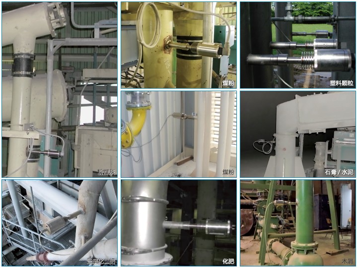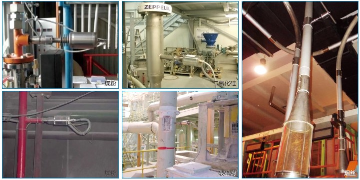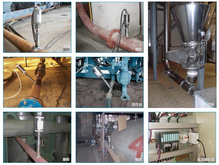 | ● 炼铁高炉啧煤,煤粉质量,浓度,流量计量; ● 电厂锅炉啧煤,煤粉质量,浓度,流量计量; ● 电厂垃圾焚烧发电活性炭流量检测; ● 垃圾焚化过程炉污染物排放流量检测; ● 气力输送过程中石灰石粉末流量测量; ● 自由落体生石灰流量测量; ● 自由落体粮食固体流量计量; | ● 自由落体盐粒流量计量; ● 自由落体玉米面流量计量; ● 自由落体段焙粉流量测量; ● 磷酸钠流量监测; ● 土豆片调料粉流量监测剂量分配; ● 各种燃料锅炉烟尘排放浓度监测等。 |