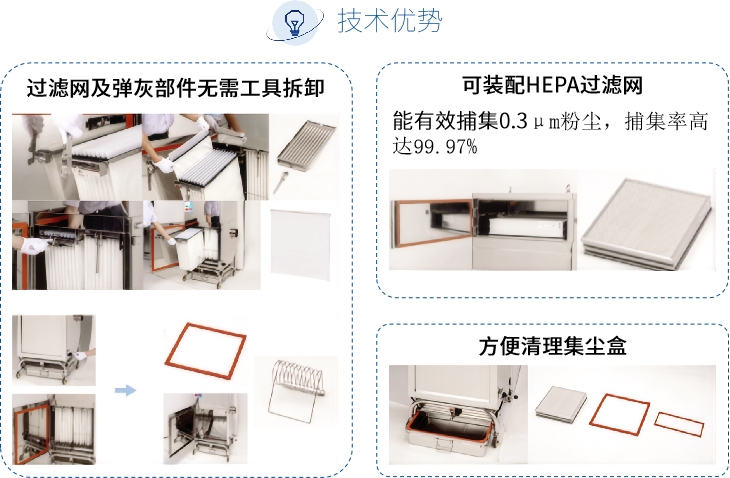 2、可装配HEPA过滤网(能有效捕集0.3μm粉尘,捕集率高达99.97%)