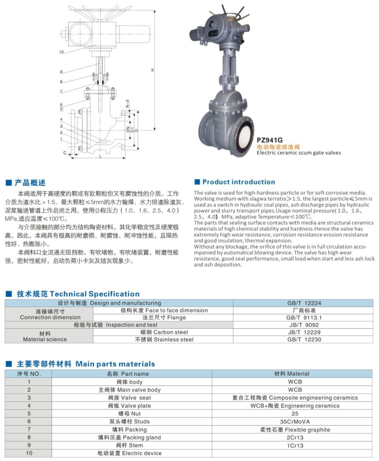 与介质接触的部分均为结构陶瓷材料,其化学稳定性及硬度极高。因此,本阀具有极高的耐磨损、耐腐蚀、耐冲蚀性能,且隔热性好、热膨胀小。