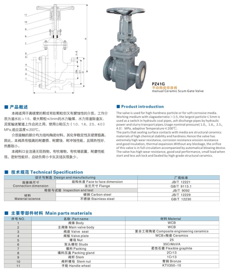 与介质接触的部分均为结构陶瓷材料,其化学稳定性及硬度极高。因此,本阀具有极高的耐磨损、耐腐蚀、耐冲蚀性能,且隔热性好、热膨胀小。