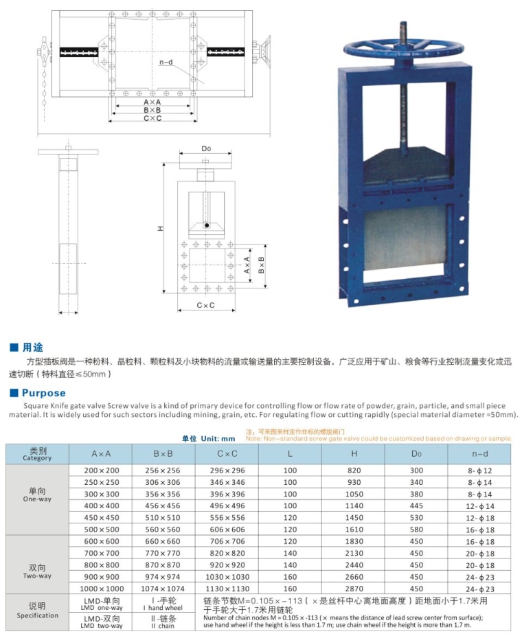 LMD手动方形插板阀