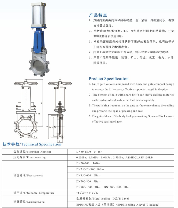1、刀闸阀主要由阀体和闸板构成,设计紧凑、占据空间小,有效支持管道强度。