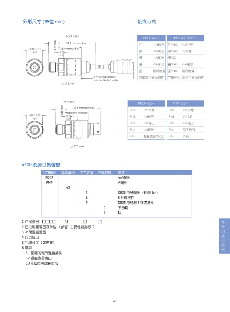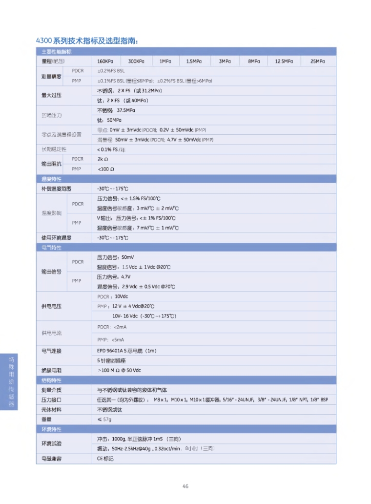 4300型发动机用温度压力双信号输出传感器