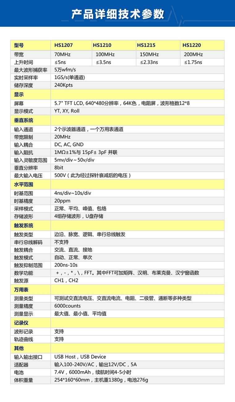手持示波器(非隔离)HS1207