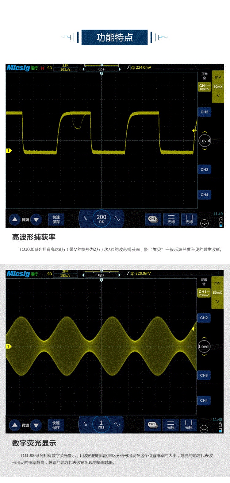 平板示波器TO1104四通道100MHz带宽TO1104 100M+4CH+探头含电池