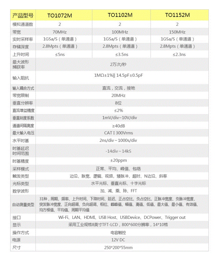 平板示波器TO1104四通道100MHz带宽(不含电池+5种解码)