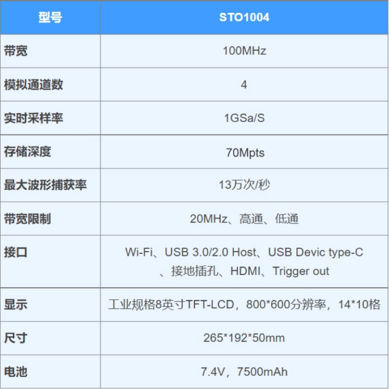 数字智能示波器STO1004含电池