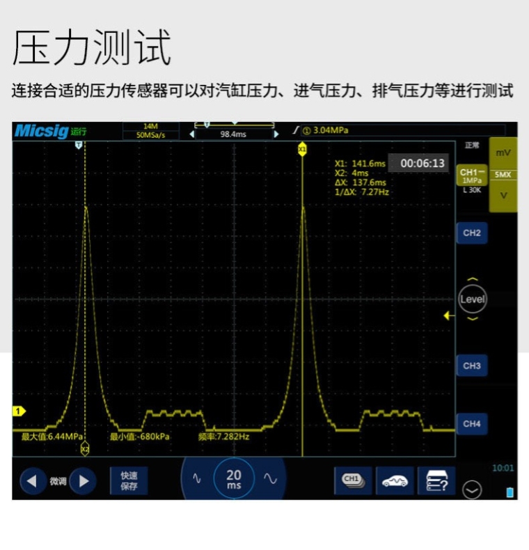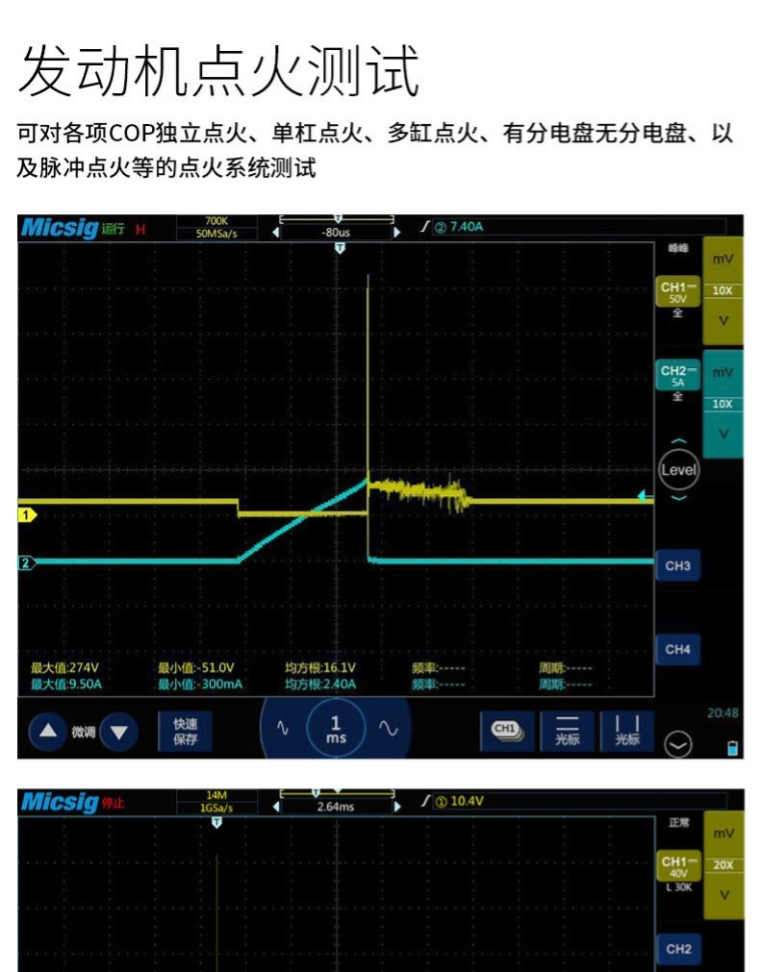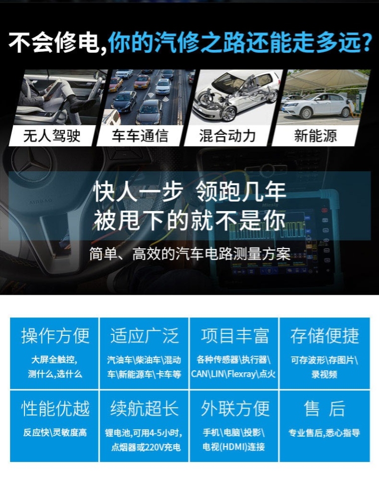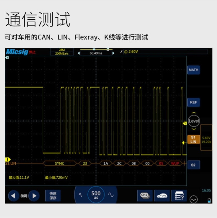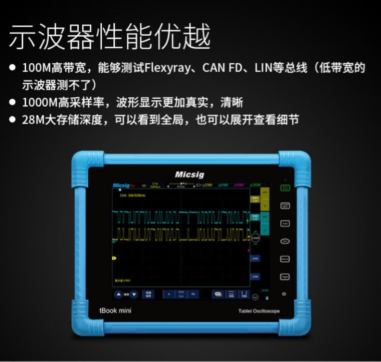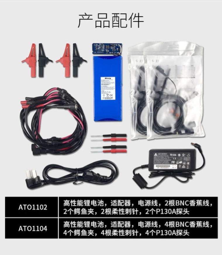 ATO3004示波器(300MHz,2GSa/s,220Mpts,4CH,含电池,CAN\LIN\SPI\UART\I2C解码,汽车示波器标准配件,手提箱