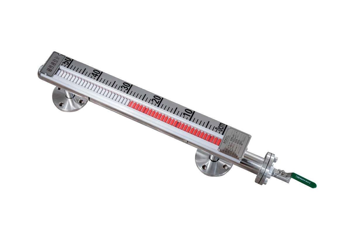 SHL2磁翻板液位计以磁性浮子为感测元件,并通过磁性浮子与显示色柱中磁性体的磁耦合作用,反映被测液位或界面的测量仪表。液位计根据浮力原理,浮子在测量管内随液位的升降而上下移动,浮子内的**磁钢通过磁耦合作用,驱动红、白色翻柱翻转,从而实现液位的指示。SHL2磁翻板液位计采用全金属结构设计,坚固、简洁、耐高压、耐高温、防腐、使用寿命长,用于石油、化工、冶金、电力、医药、食品、造纸等行业液体的测量与过程控制。