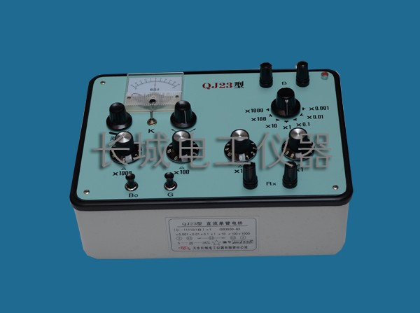 QJ23型直流电阻电桥,具有内附检流计和电池盒,整个测量机构装在金属外壳内,轻巧且便于携带,用于测量