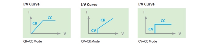 新颖的复合式操作模式CR+CC、CV+CR、CV+CC模式等,CR+CC适合应用于电源的开机测试;CV+CR可取代Von点的设定应用,CV+CC则可应用于 电池的放电测试。