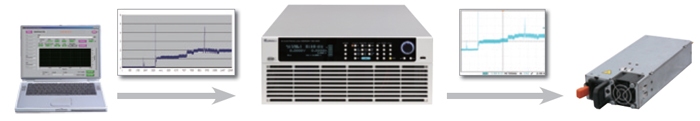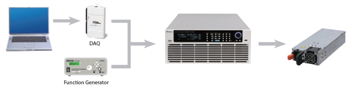 除一般的定电流、定电压、定功率、定电阻拉载模式外,在拉载任意波形时,一般传统的方式是透过电脑将预先储存的波形透过DAQ卡或者单纯 透过任意波形产生器将波形送给电子负载进行拉载,进而达到拉载任意波形的目的,如下图所示。