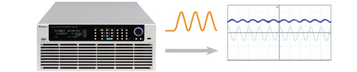 63200A系列具备独特的正弦波拉载电流,可让使用者设定拉载电流偏压值(I_DC)、拉载正弦波(I_AC)及正弦波频率值(Frequency),此正弦波拉载的 低点不可小于零安培。此正弦波拉载电流功能可被应用在D/D及伺服器电源供应器与燃料电池的直流内阻(DCIR)测试上