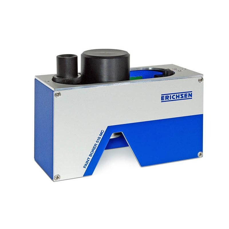 518MC是一款结构非常紧凑的仪器。所有基本的零件 – 钻孔装置,测量显微镜,样品照明和电池都包在一个坚固的外壳里。钻头和显微镜装在一个可水平滑动的滑块上,这样钻完孔后不必移动仪器可直接测量。