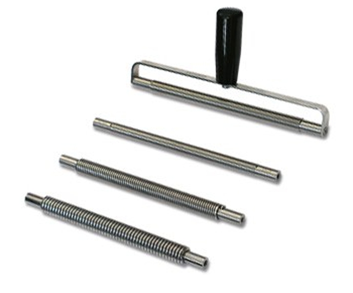 | 一套358包括有一个带把手的支架和4根螺纹滚柱,可在订货时注明厚度要求(有10, 15, 20, 30, 40, 50, 60, 80, 100, 120, 150, 200 µm共12种供选择,奉送便携箱)。 | |