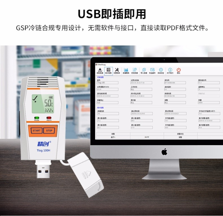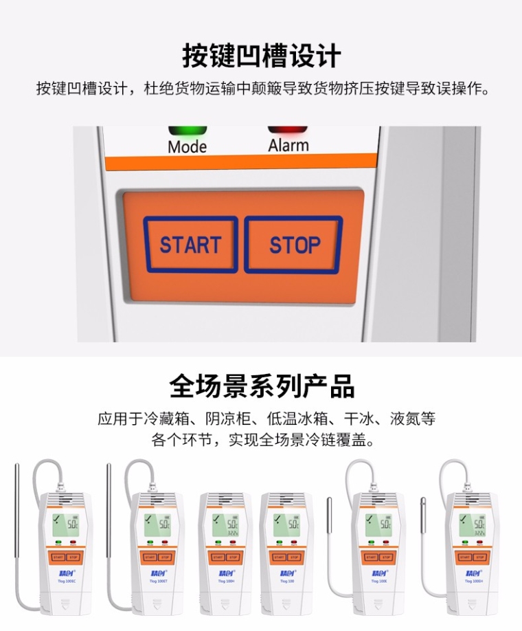 本系列记录仪具有LCD 液晶显示和防止误触碰的双按键设计。按键操作可查看设备状态和记录参数;支持多种启动方式、停止方式、多个阈值设置,以满足不同用户的需求;支持记满停止和循环覆盖两种存储方式;可自动生成PDF 报告,无软件也可随时查看数据。蓝牙款可通过APP 进行参数配置、数据读取、蓝牙打印,实现无需开箱即可查看数据,简单、方便、实用。