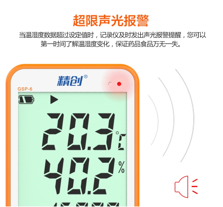 • 自由设置报警阈值,支持超限声光报警