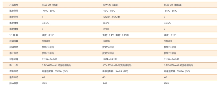 RCW-20 系列是一款配套安装冷藏箱的物联网记录仪,具有安装支架,可以配套安装在冷藏箱上,使用4G 网络实时上传数据,同时具有LSB+GPS 定位、现场蓝牙打印等功能,满足冷链物流操作中,现场交付冷链全过程的温湿度数据记录的要求。