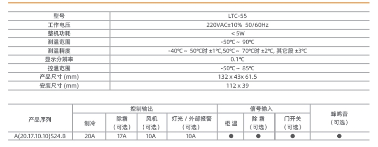 ● 多路控制输出可进行压缩机、除霜、风机、灯光控制;