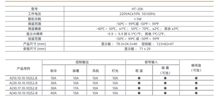 ● 双温度传感器用于柜温调节、除霜控制;
