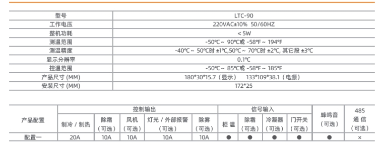● 多路控制输出可进行压缩机、除霜、风机、灯光/ 外部报警、除雾控制;