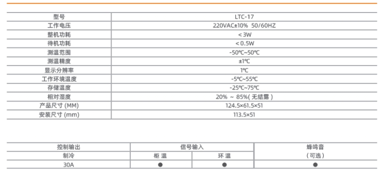 ● 控制器具备温度传感器自检功能,检测到故障时具有多种保护和报警方式。