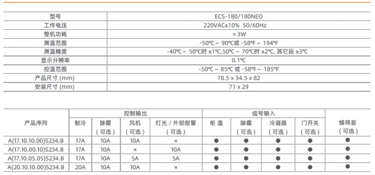 ● 多路控制输出可进行压缩机、除霜、风机、灯光 / 外部报警控制 ;