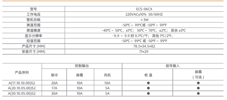 ● 三路控制输出,压缩机控制、除霜控制、风机控制;
