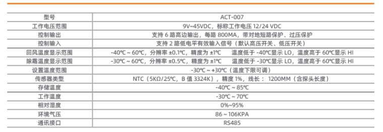 制冷、制热、除霜、备电、数码管亮度自动调节等基本功能,预留远程通讯接口,可配合联网模块,实现远程监控、远程参数设置、远程开关机,车辆轨迹回放等增强功能。可用于冷藏车非独立式压缩机制冷系统。
