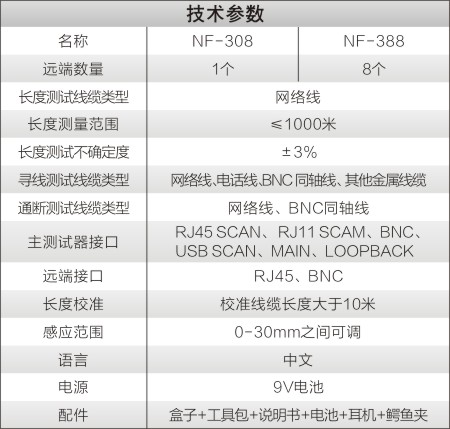 3. 可测网线在305米内的长度,可判断短路及断点位置,有校准功能。