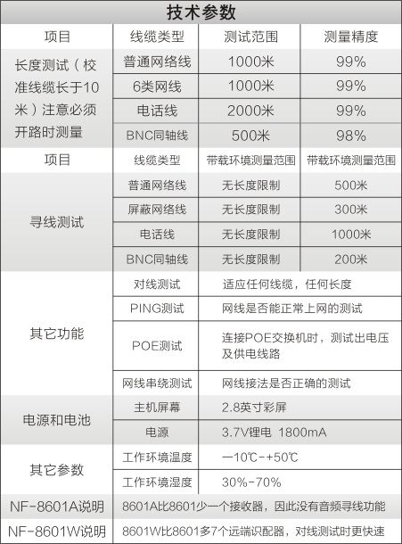 1.测网线、电话线、BNC同轴线的短路,断路,交叉,反接,配对的连接情况。
