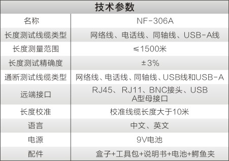1.可测试网线、电话线、同轴线、USB-A线的长度和断点。
