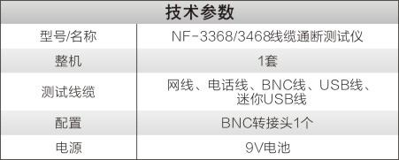 1.可测网络线、电话线、BNC线、USB线的连接、交叉、短接。
