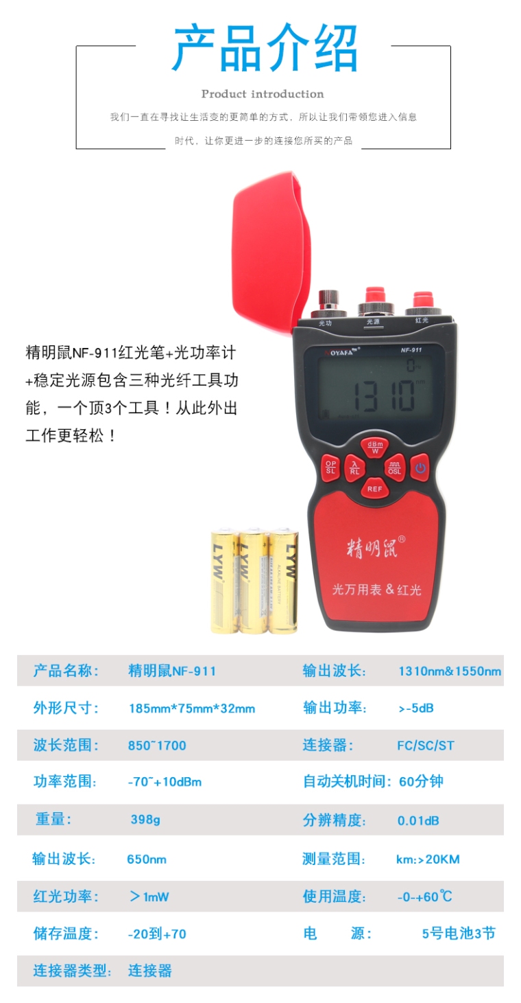 NF-911多功能红光测试笔光功率计稳定光源光纤测试仪工具
