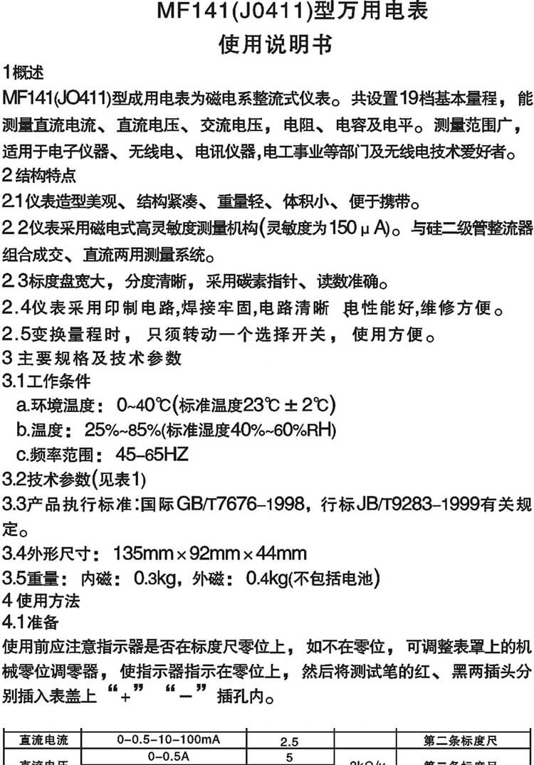 MF141型万用电表