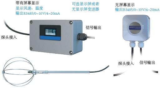 JT1402具备RS485、4-20mA、0-10V等多种标准信号输出。传感器采用分体结构设计,传感器部分为杆状结构,带球笼式防护罩,通过延长引线和处理电路连接。