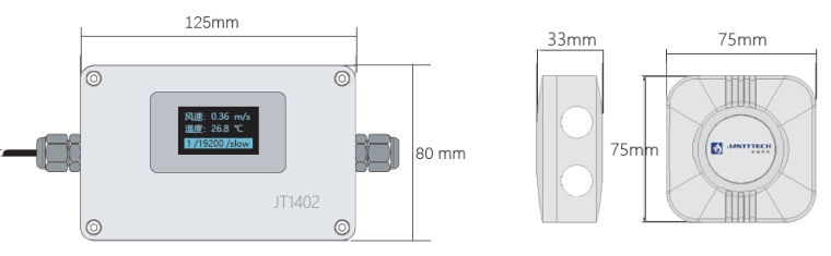 机壳采用高防护等级设计,有带显示和不带显示两种规格。安装形式有导轨安装与壁挂安装,适用于长期在线风速测试的场所。