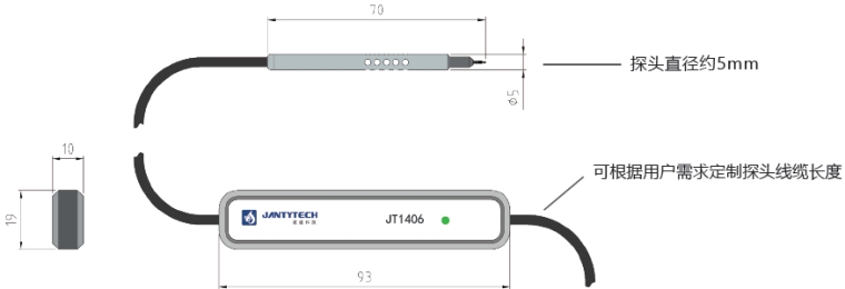 JT1406风速传感器,为微小型全向风速传感器,直径仅为6mm,探头长度7cm,能安装在狭小空间或管道,同样拥有出色的测量精度和灵敏度,适用于适用于建筑构件、材料研究、电气设备通风研究等。