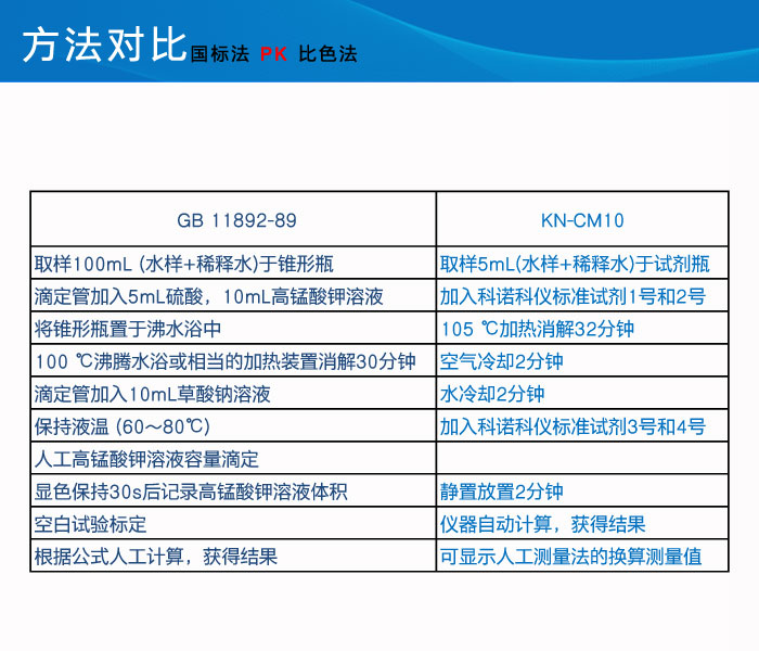 | 测定方法 | 比色法(原理参考 水质高锰酸盐指数的测定GB11892-89) |
